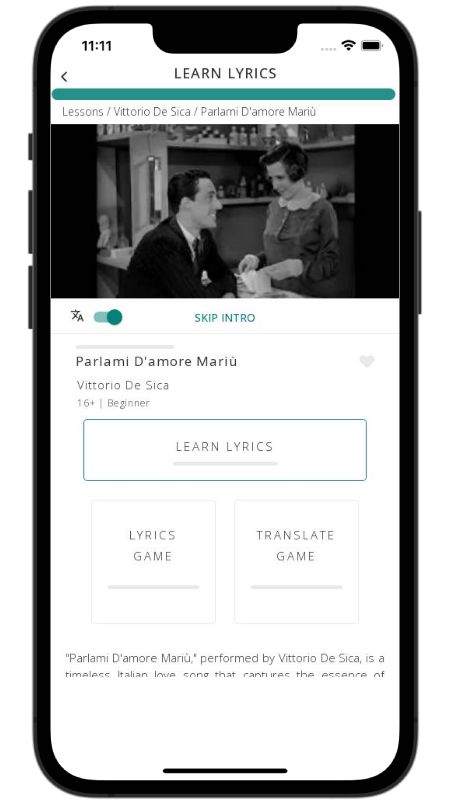 In addition to reading lyric translations, you can now learn Italian with music and lyrics from your favorite artists.