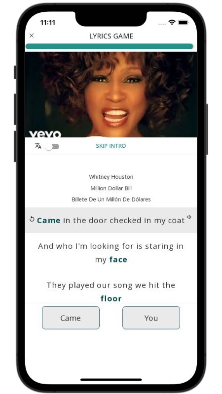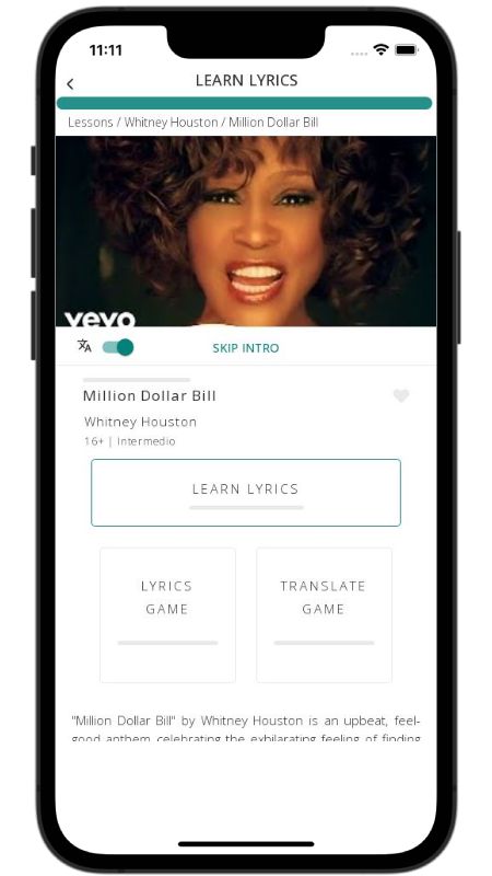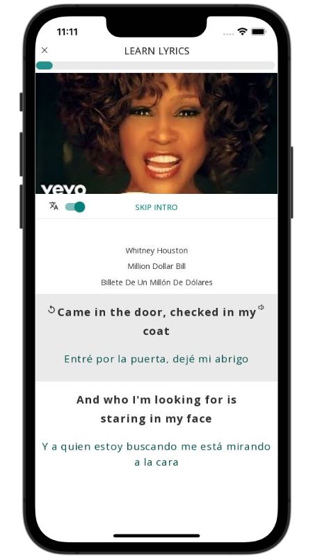 In addition to reading lyric translations, you can now learn English with music and lyrics from your favorite artists.
