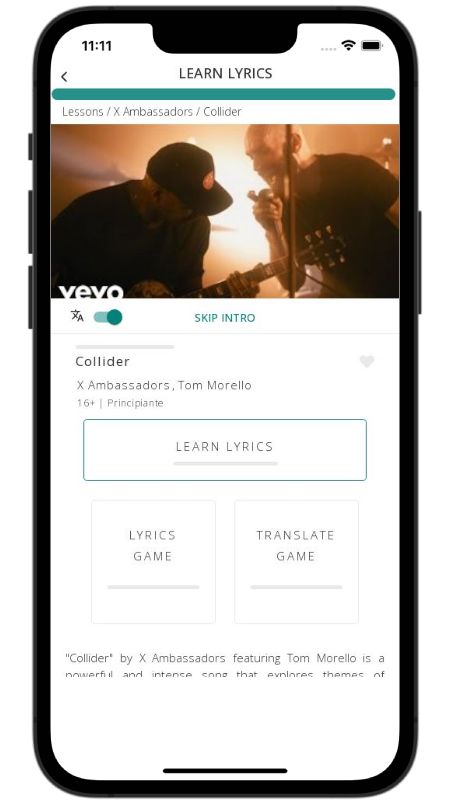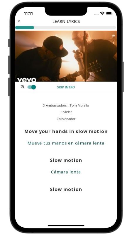 In addition to reading lyric translations, you can now learn English with music and lyrics from your favorite artists.