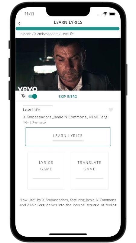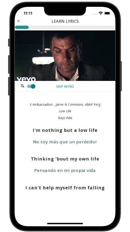 In addition to reading lyric translations, you can now learn English with music and lyrics from your favorite artists.