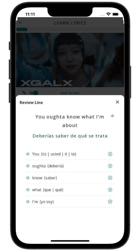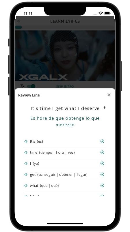 In addition to reading lyric translations, you can now learn English with music and lyrics from your favorite artists.