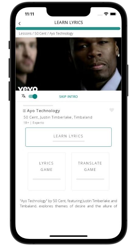In addition to reading lyric translations, you can now learn English with music and lyrics from your favorite artists.