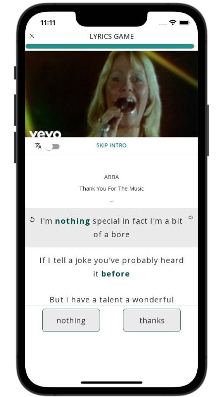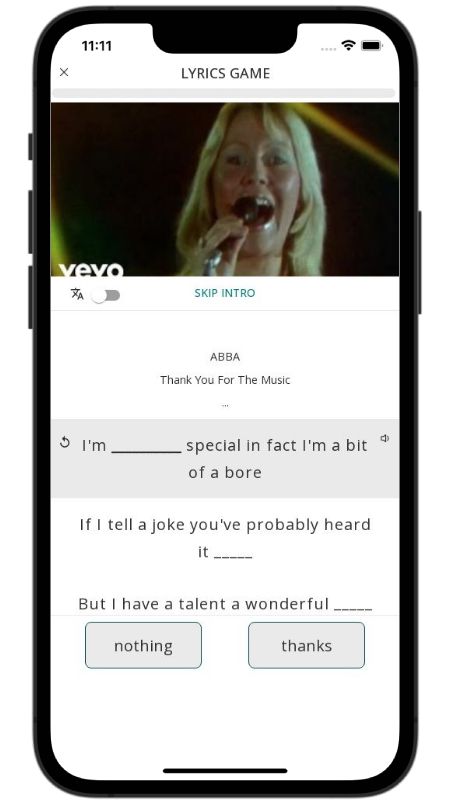 In addition to reading lyric translations, you can now learn English with music and lyrics from your favorite artists.