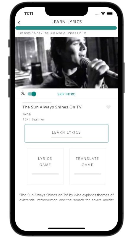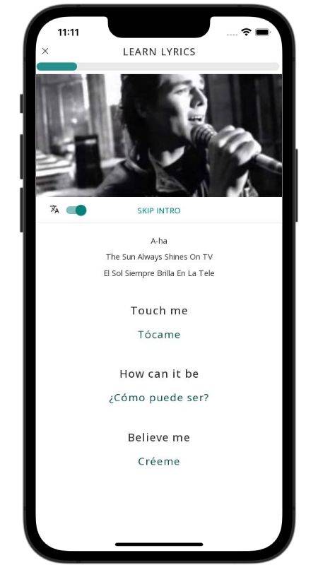 In addition to reading lyric translations, you can now learn English with music and lyrics from your favorite artists.