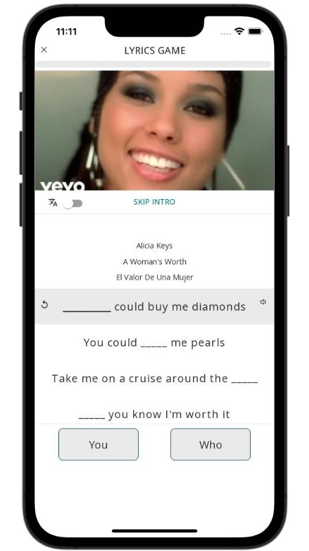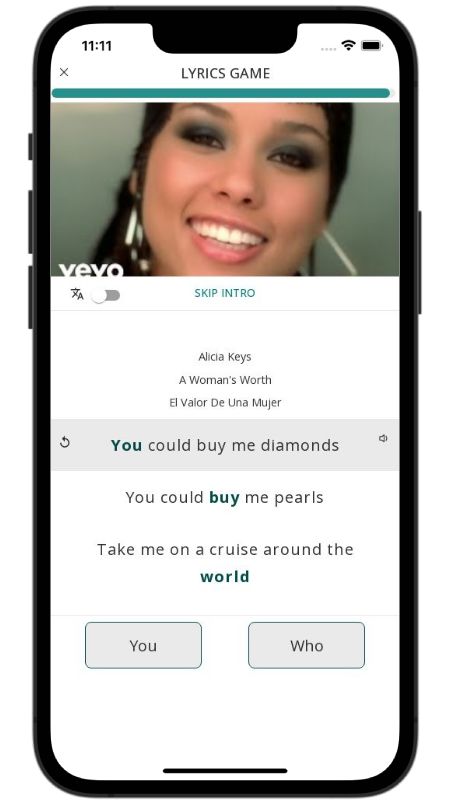 In addition to reading lyric translations, you can now learn English with music and lyrics from your favorite artists.