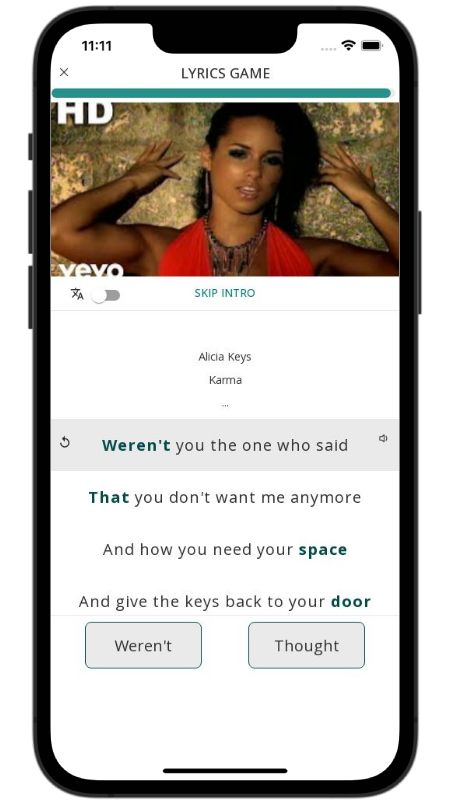 In addition to reading lyric translations, you can now learn English with music and lyrics from your favorite artists.