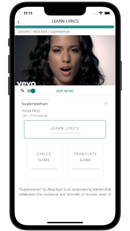 In addition to reading lyric translations, you can now learn English with music and lyrics from your favorite artists.