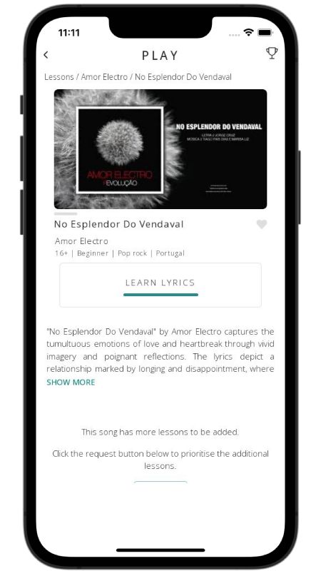 In addition to reading lyric translations, you can now learn Portuguese with music and lyrics from your favorite artists.