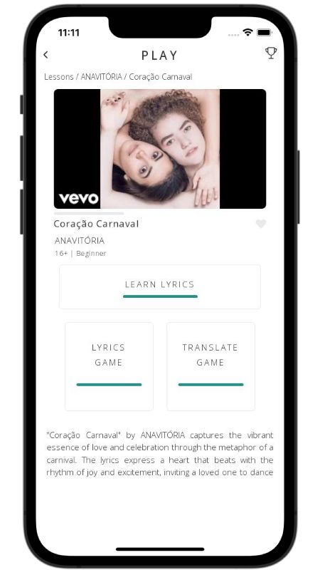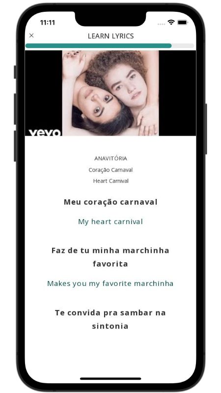In addition to reading lyric translations, you can now learn Portuguese with music and lyrics from your favorite artists.