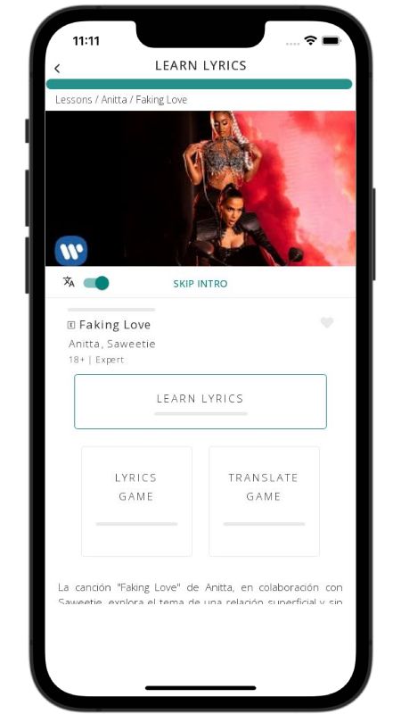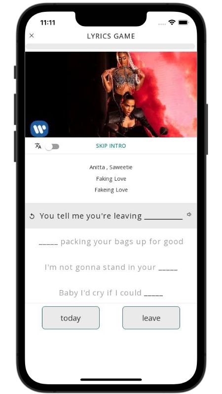 In addition to reading lyric translations, you can now learn English with music and lyrics from your favorite artists.