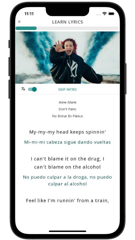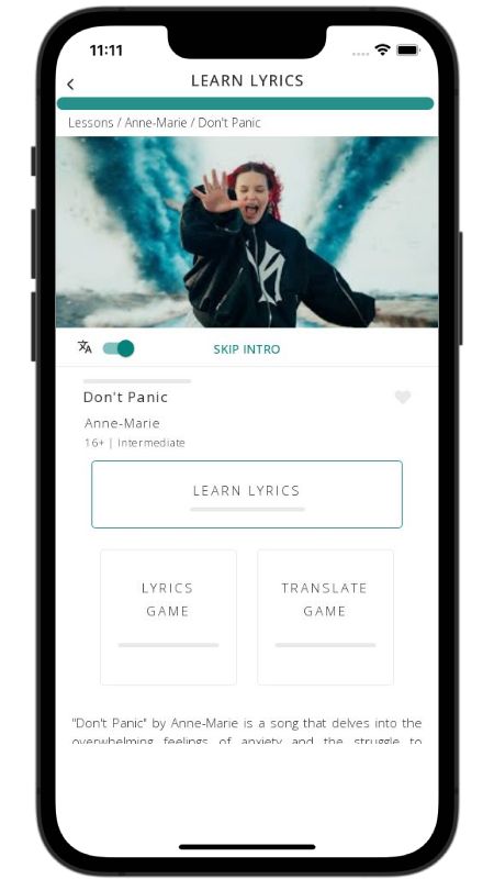 In addition to reading lyric translations, you can now learn English with music and lyrics from your favorite artists.