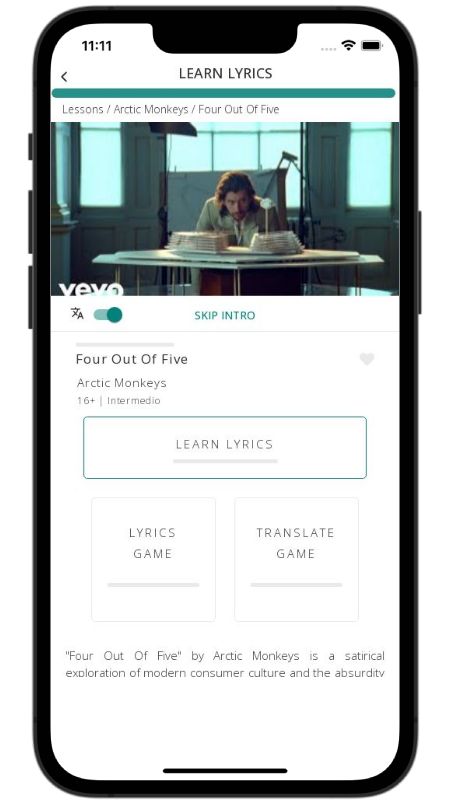 In addition to reading lyric translations, you can now learn English with music and lyrics from your favorite artists.