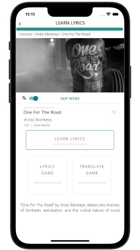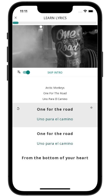 In addition to reading lyric translations, you can now learn English with music and lyrics from your favorite artists.
