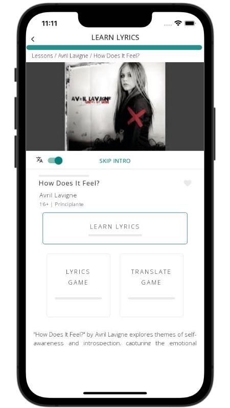In addition to reading lyric translations, you can now learn English with music and lyrics from your favorite artists.