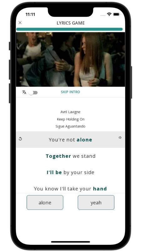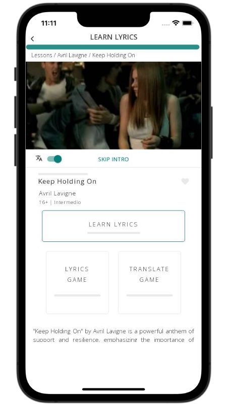 In addition to reading lyric translations, you can now learn English with music and lyrics from your favorite artists.