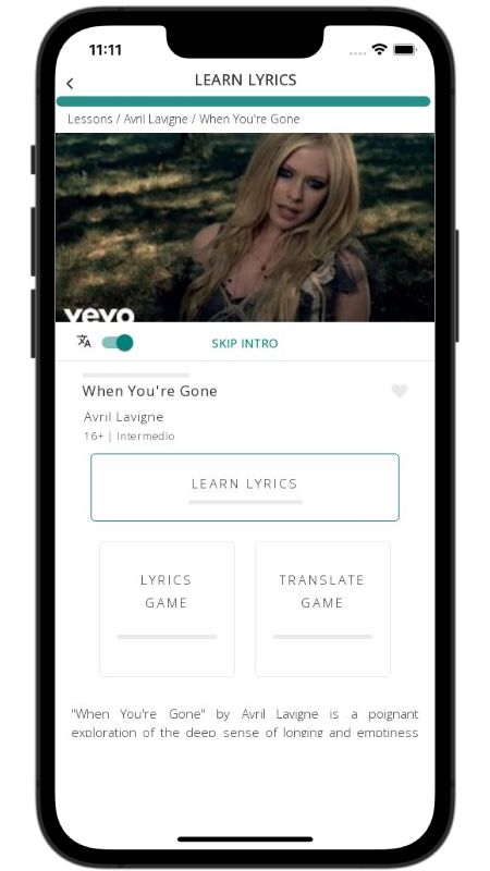 In addition to reading lyric translations, you can now learn English with music and lyrics from your favorite artists.