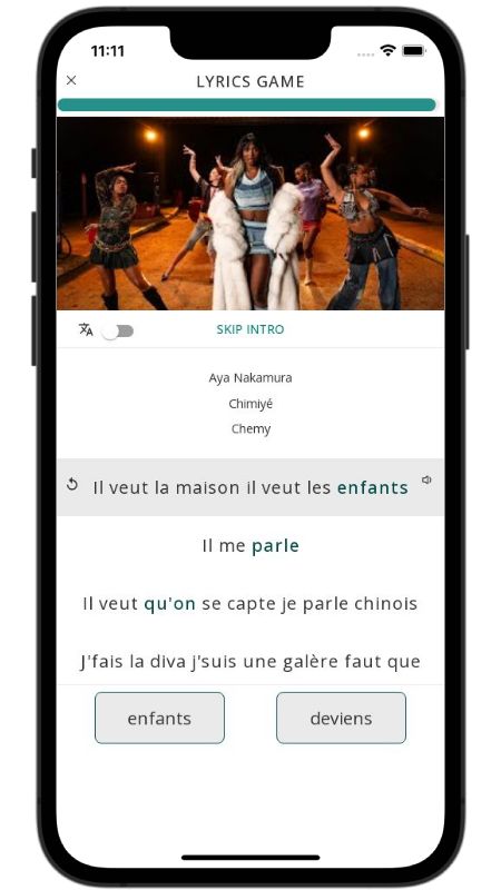 In addition to reading lyric translations, you can now learn French with music and lyrics from your favorite artists.