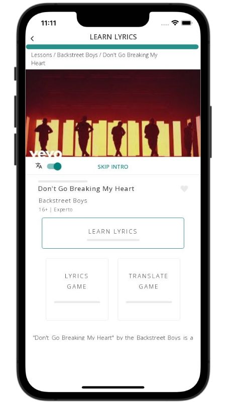 In addition to reading lyric translations, you can now learn English with music and lyrics from your favorite artists.