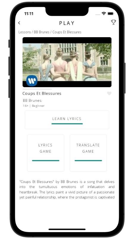 In addition to reading lyric translations, you can now learn French with music and lyrics from your favorite artists.