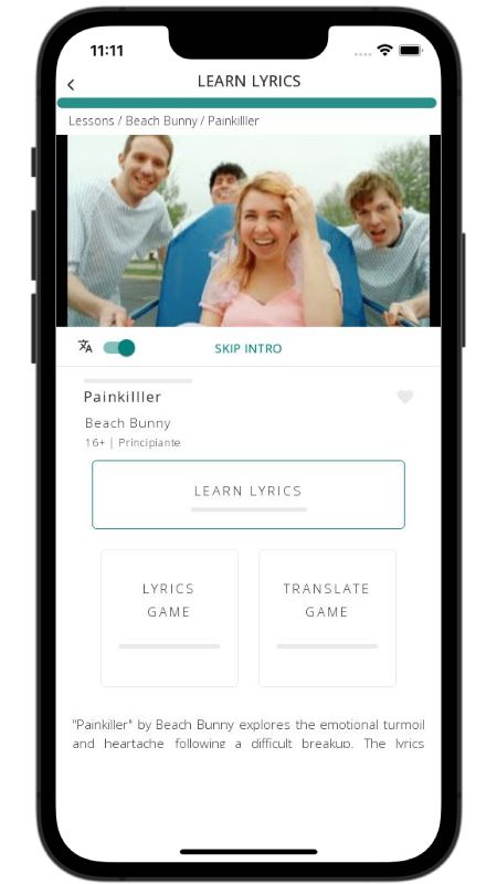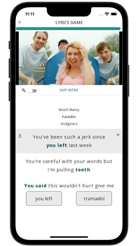 In addition to reading lyric translations, you can now learn English with music and lyrics from your favorite artists.