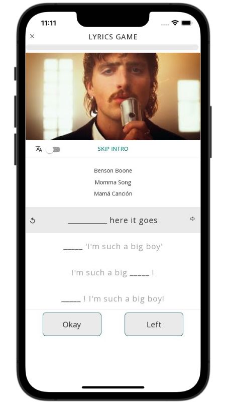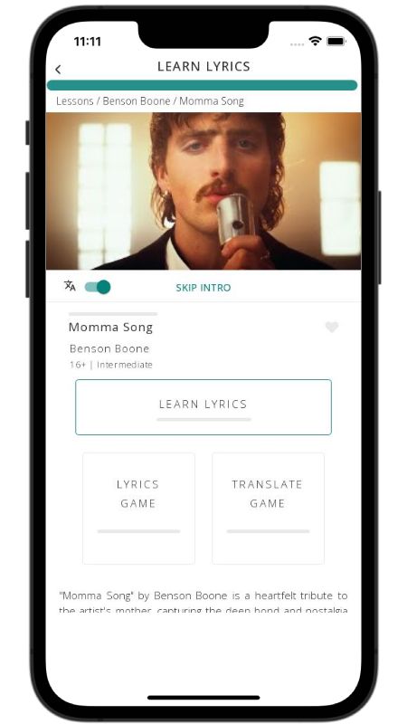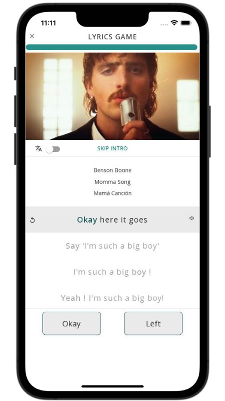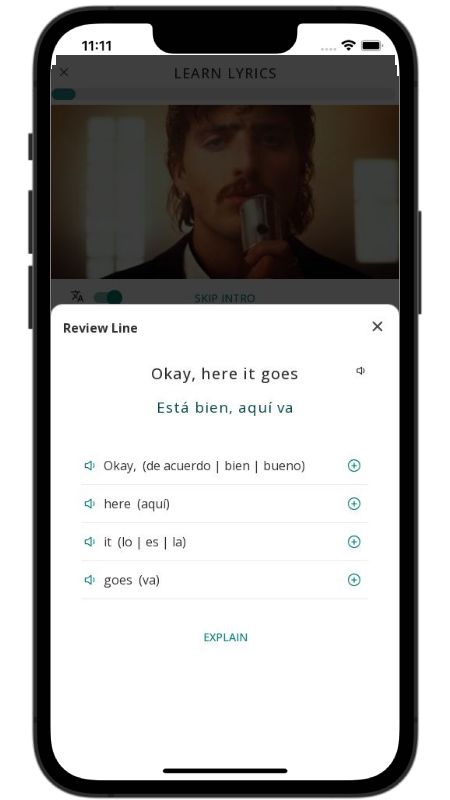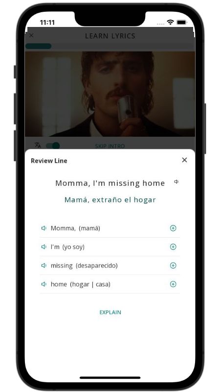 In addition to reading lyric translations, you can now learn English with music and lyrics from your favorite artists.