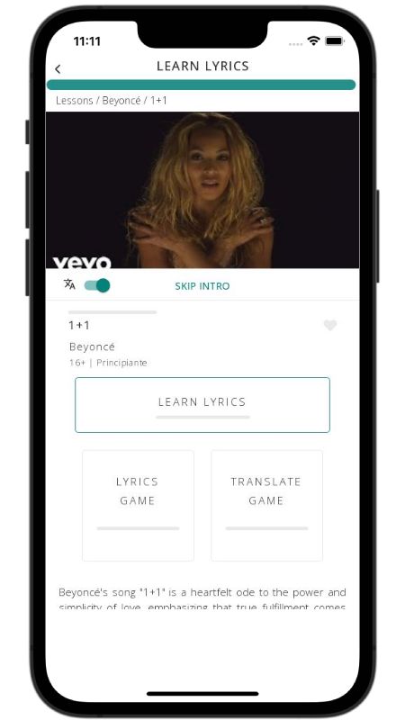 In addition to reading lyric translations, you can now learn English with music and lyrics from your favorite artists.