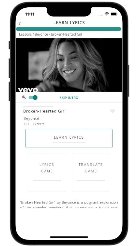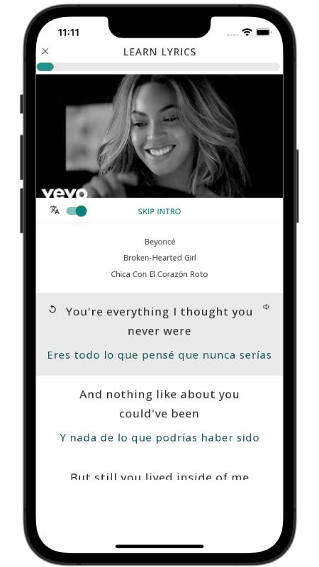 In addition to reading lyric translations, you can now learn English with music and lyrics from your favorite artists.
