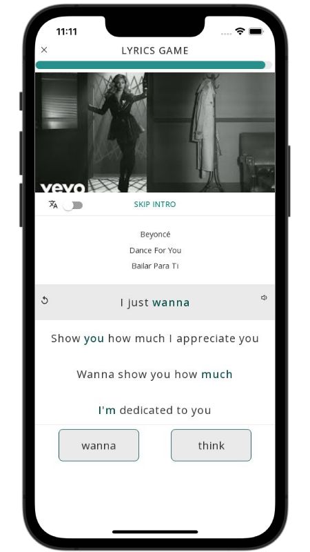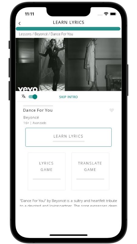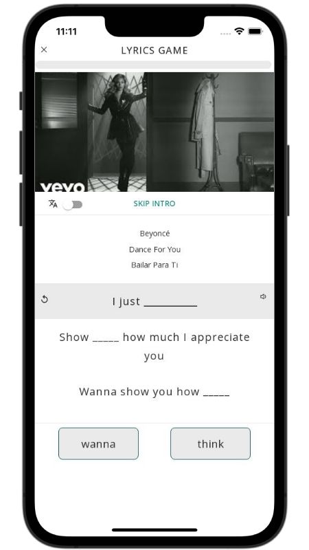In addition to reading lyric translations, you can now learn English with music and lyrics from your favorite artists.