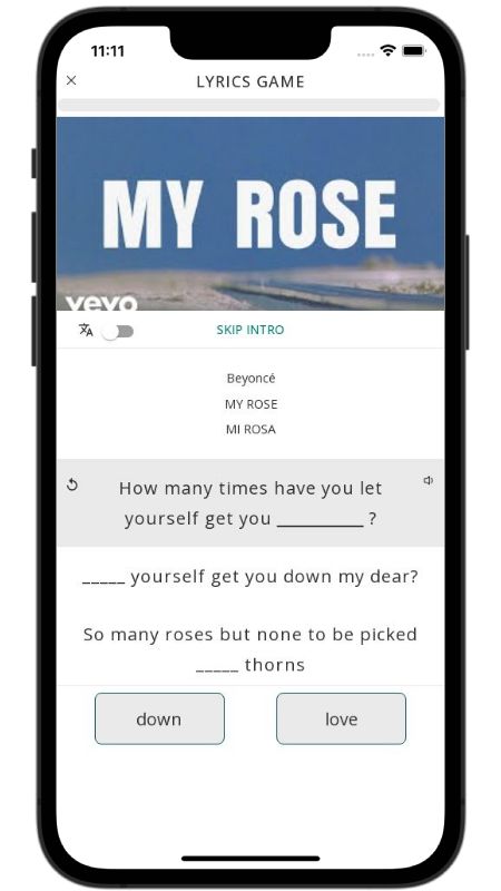 In addition to reading lyric translations, you can now learn English with music and lyrics from your favorite artists.