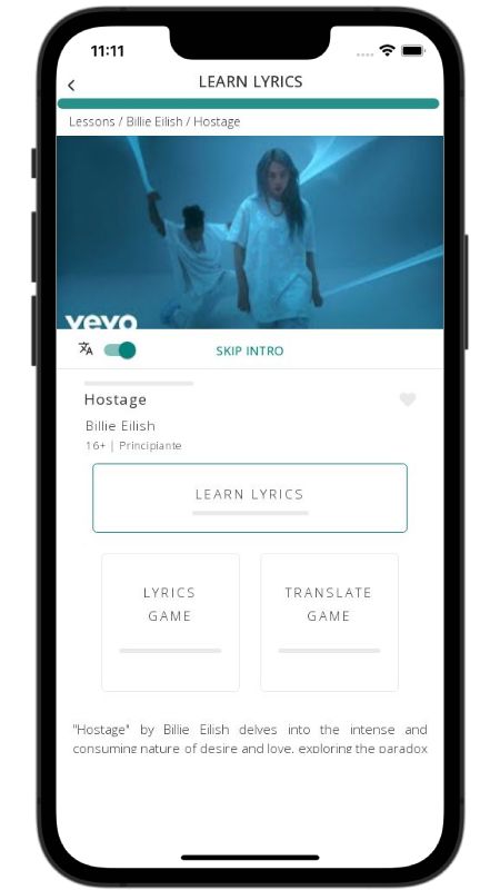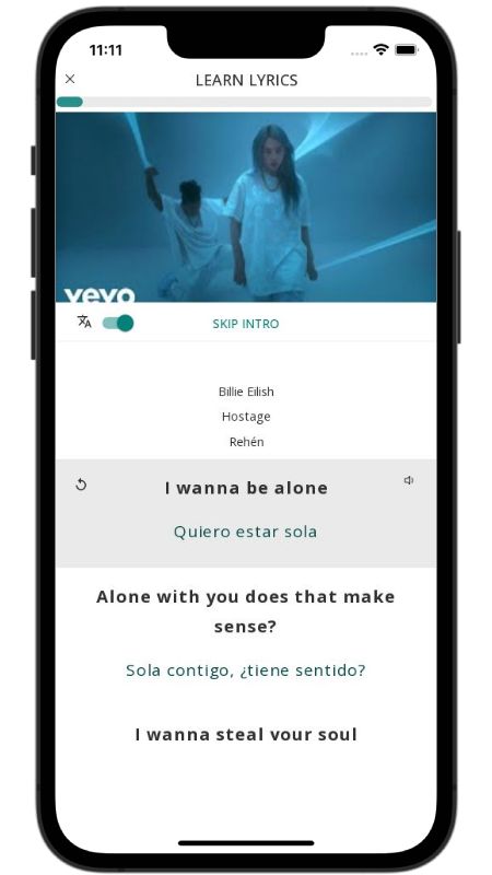In addition to reading lyric translations, you can now learn English with music and lyrics from your favorite artists.