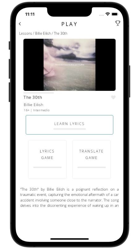 In addition to reading lyric translations, you can now learn English with music and lyrics from your favorite artists.