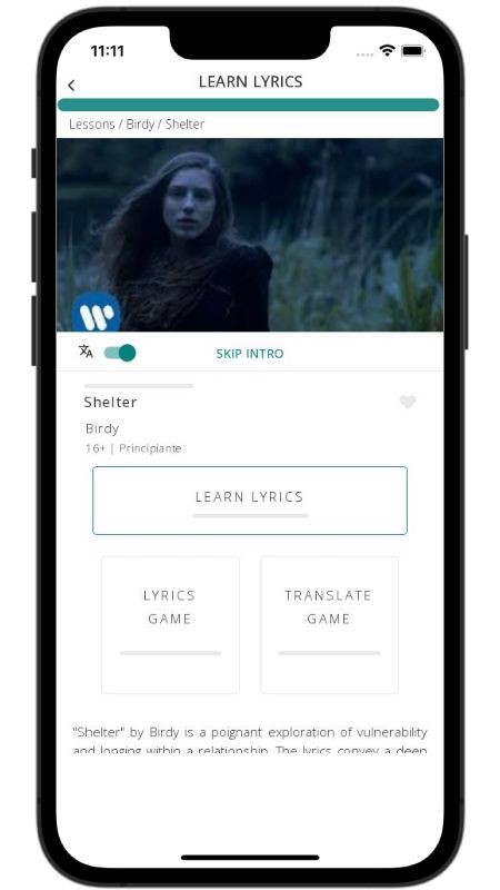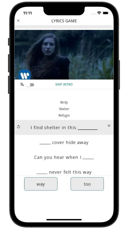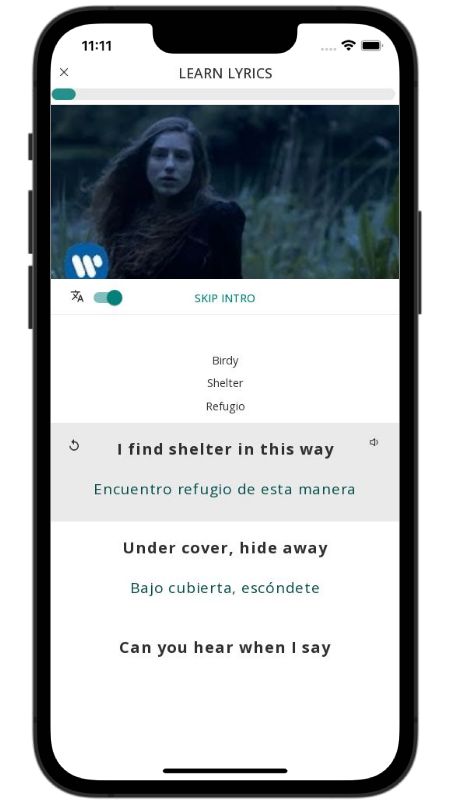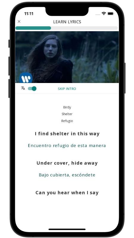 In addition to reading lyric translations, you can now learn English with music and lyrics from your favorite artists.