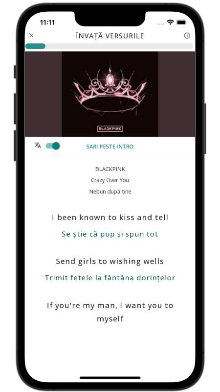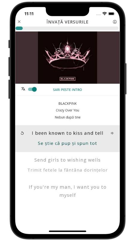 Below, I translated the lyrics of the song Crazy Over You by BLACKPINK from English to Romanian.