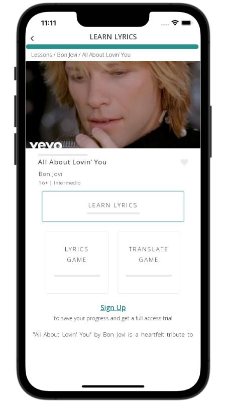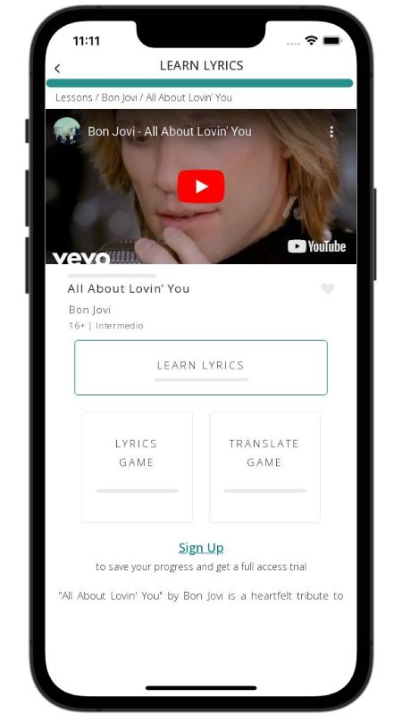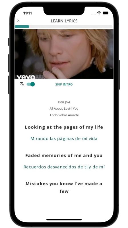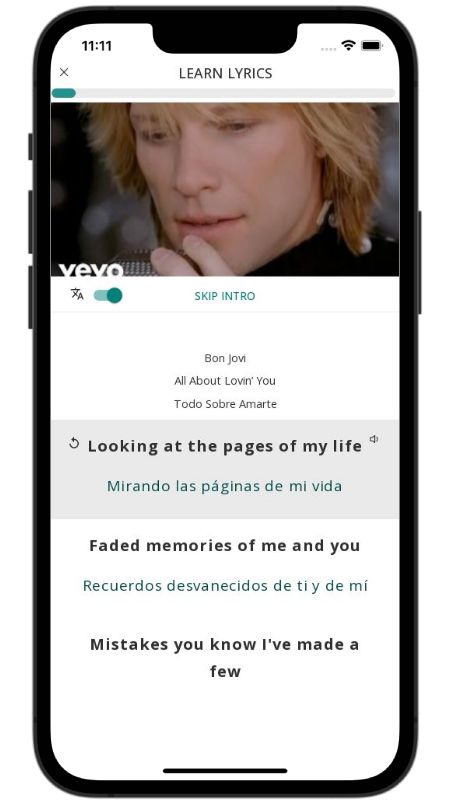In addition to reading lyric translations, you can now learn English with music and lyrics from your favorite artists.