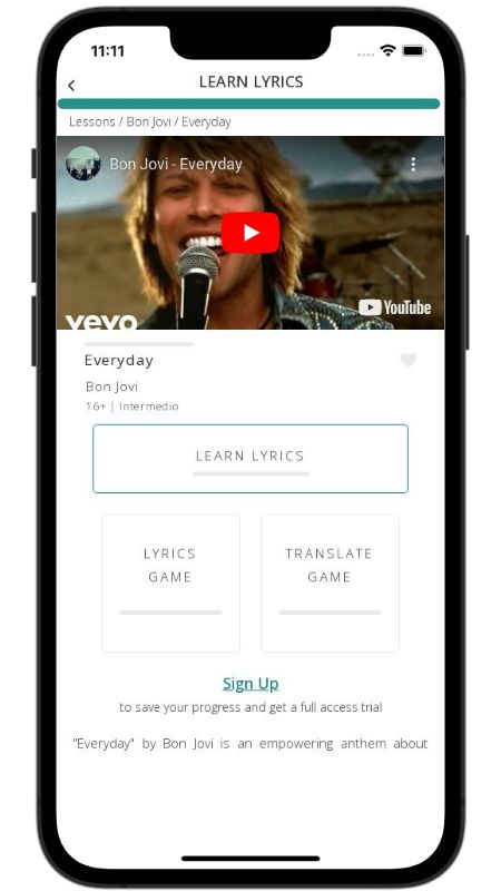 In addition to reading lyric translations, you can now learn English with music and lyrics from your favorite artists.