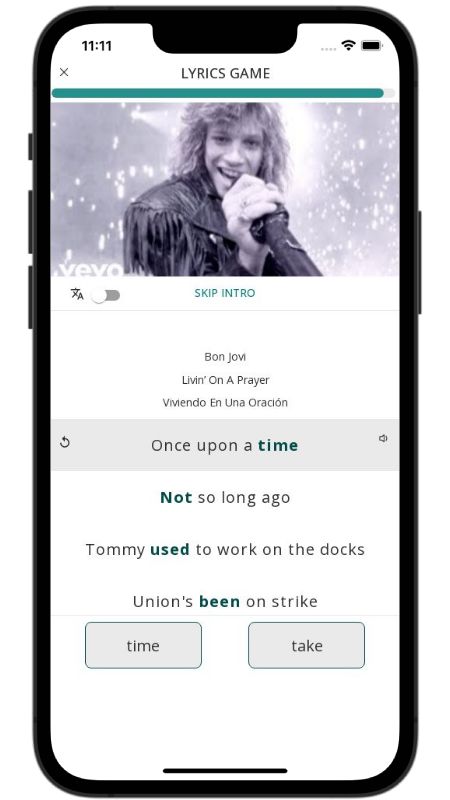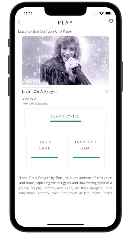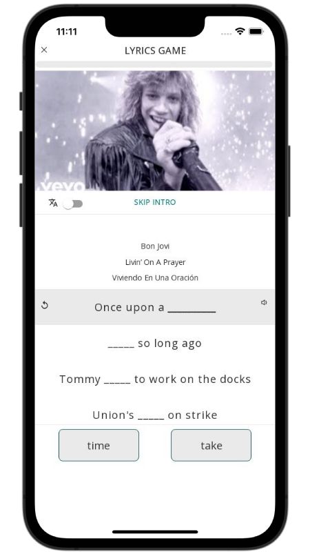 In addition to reading lyric translations, you can now learn English with music and lyrics from your favorite artists.