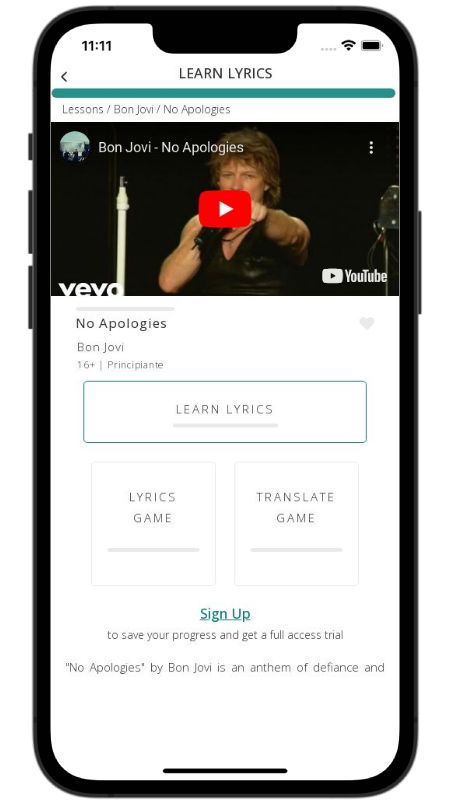 In addition to reading lyric translations, you can now learn English with music and lyrics from your favorite artists.