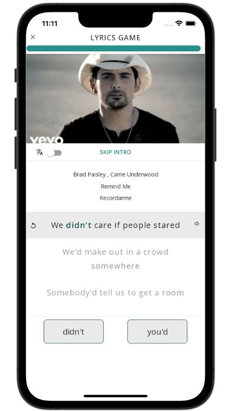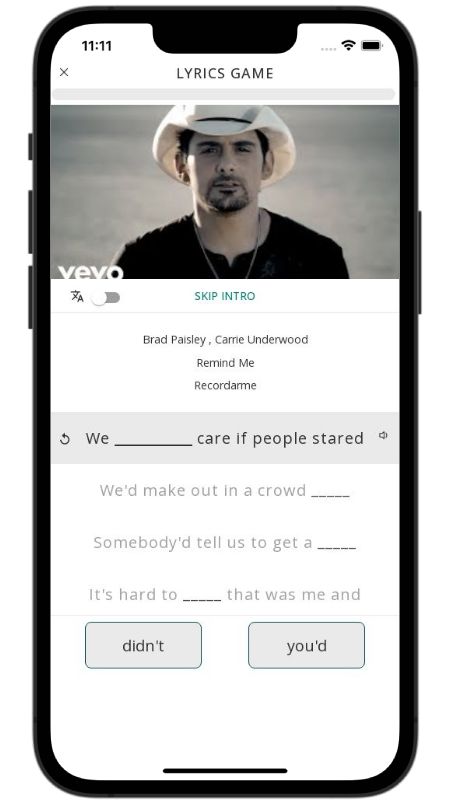 In addition to reading lyric translations, you can now learn English with music and lyrics from your favorite artists.