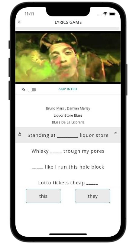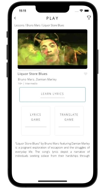In addition to reading lyric translations, you can now learn English with music and lyrics from your favorite artists.