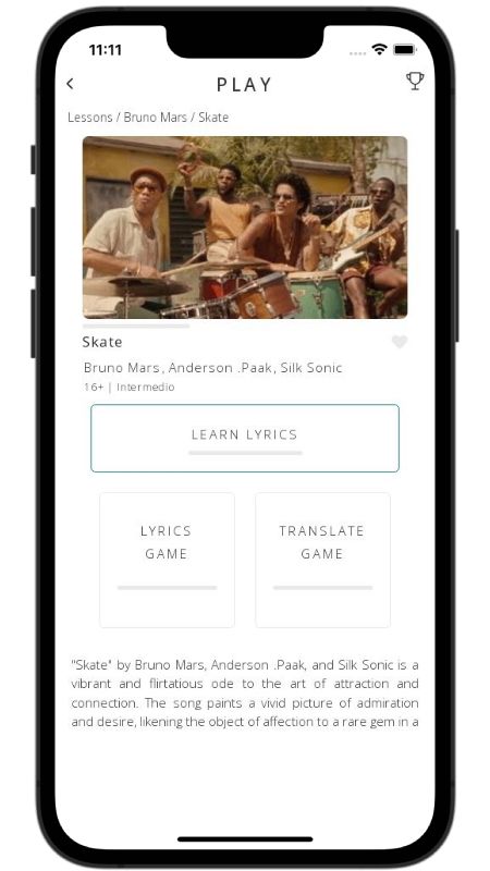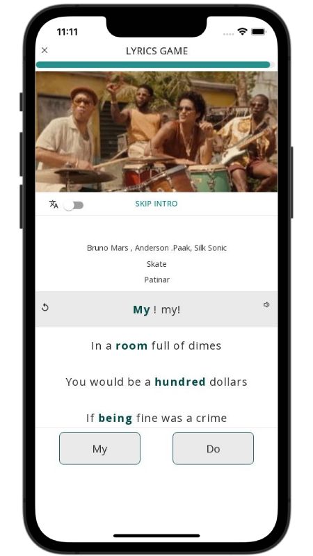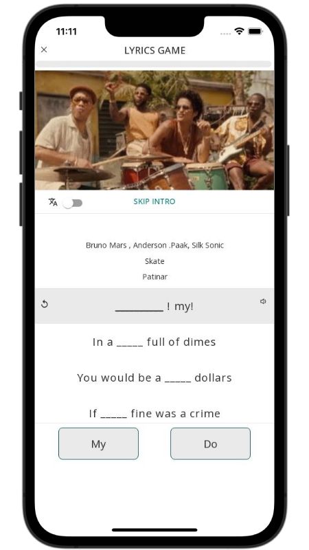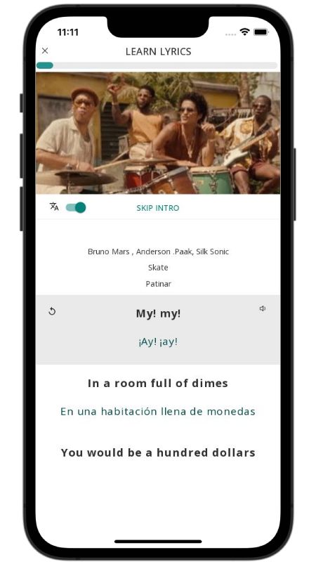 In addition to reading lyric translations, you can now learn English with music and lyrics from your favorite artists.