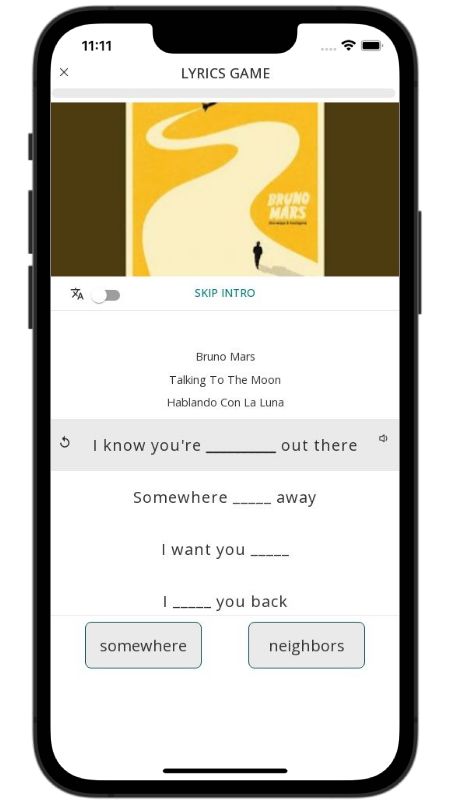 In addition to reading lyric translations, you can now learn English with music and lyrics from your favorite artists.
