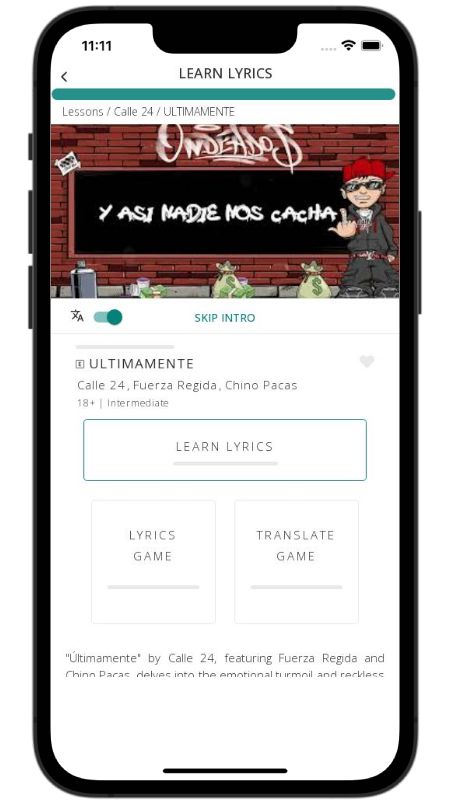 In addition to reading lyric translations, you can now learn Spanish with music and lyrics from your favorite artists.
