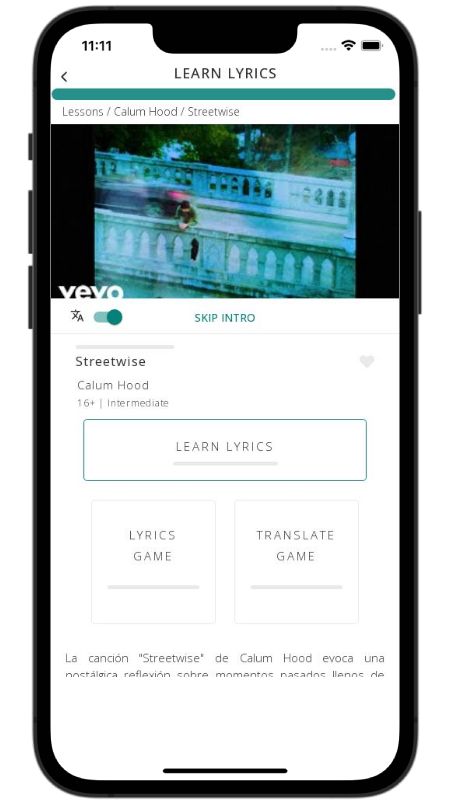 In addition to reading lyric translations, you can now learn English with music and lyrics from your favorite artists.