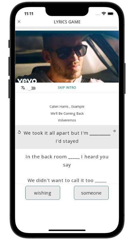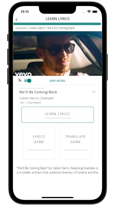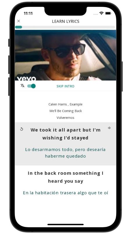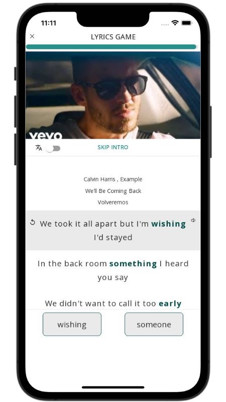 In addition to reading lyric translations, you can now learn English with music and lyrics from your favorite artists.