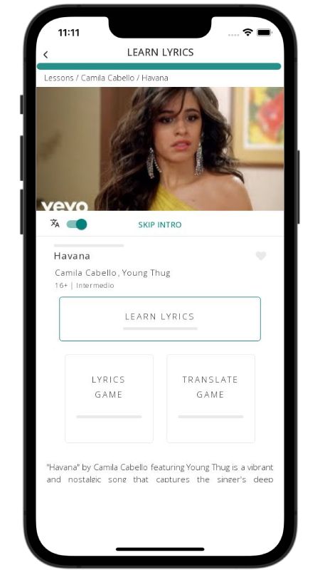 In addition to reading lyric translations, you can now learn English with music and lyrics from your favorite artists.