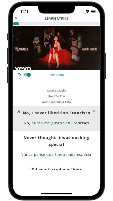 In addition to reading lyric translations, you can now learn English with music and lyrics from your favorite artists.