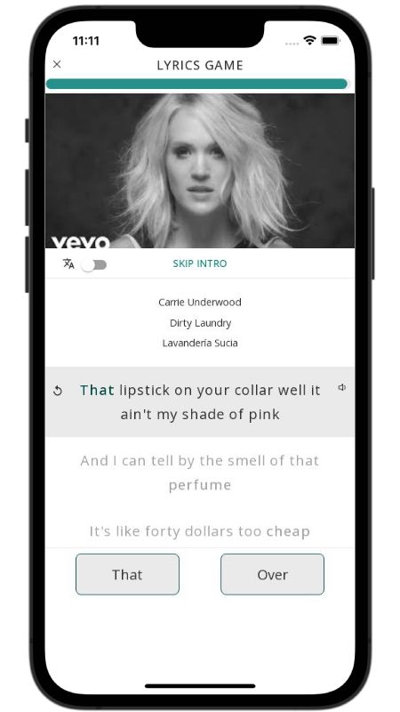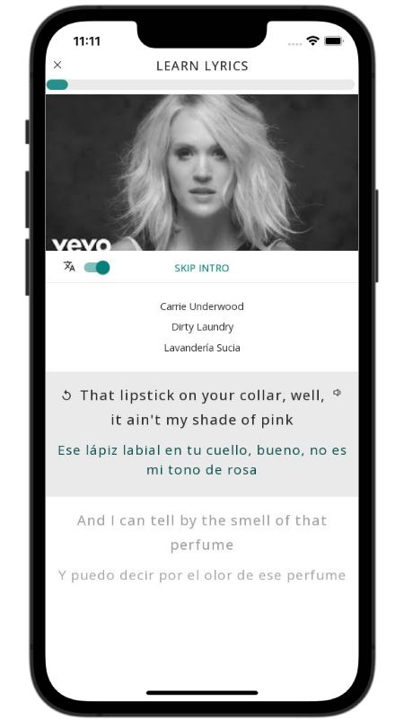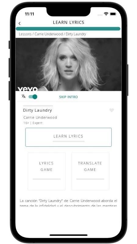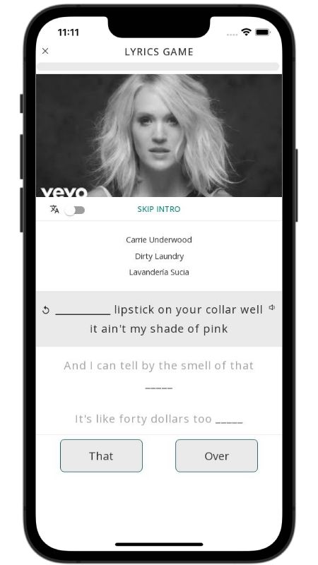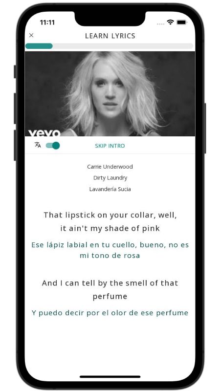 In addition to reading lyric translations, you can now learn English with music and lyrics from your favorite artists.