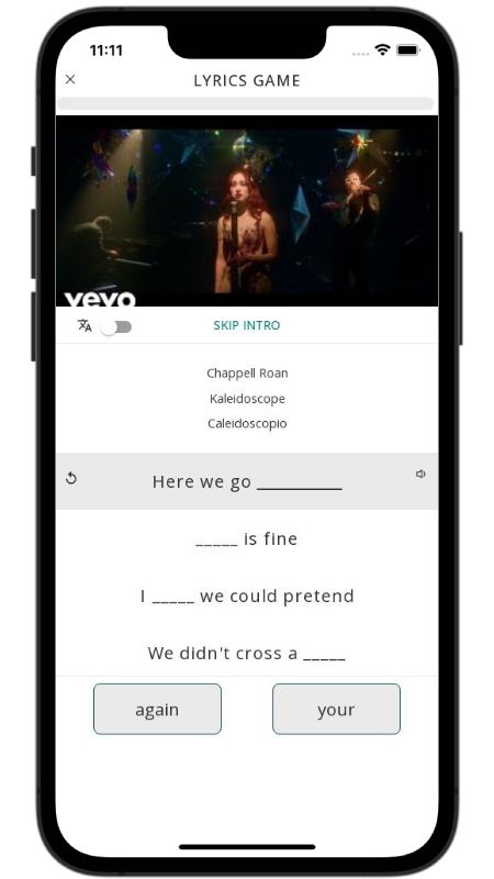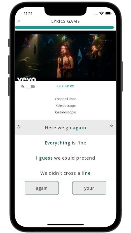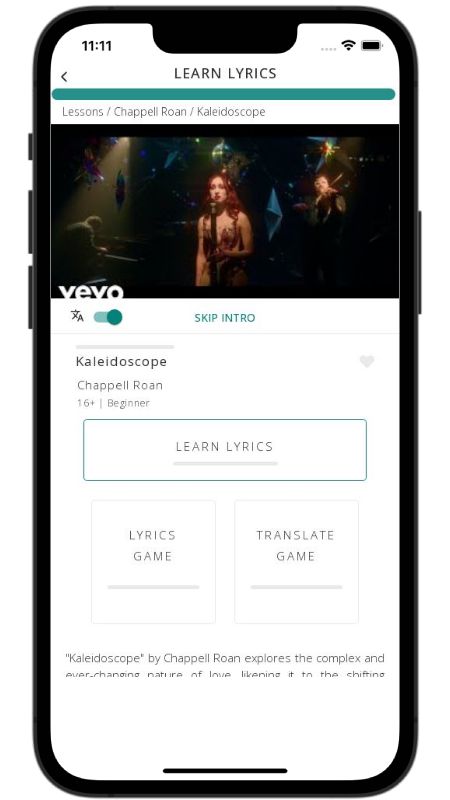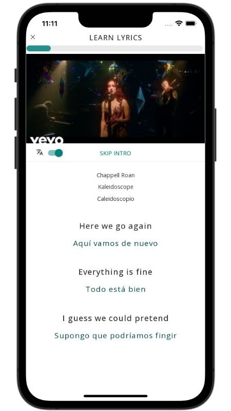 In addition to reading lyric translations, you can now learn English with music and lyrics from your favorite artists.