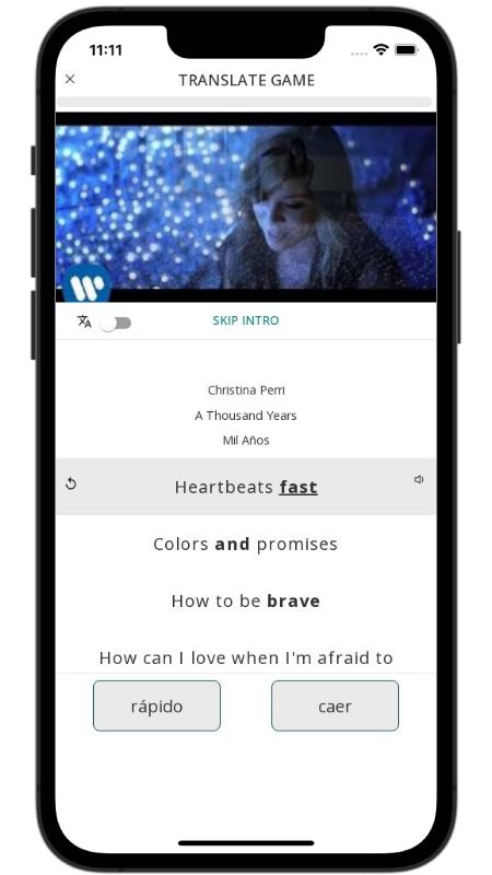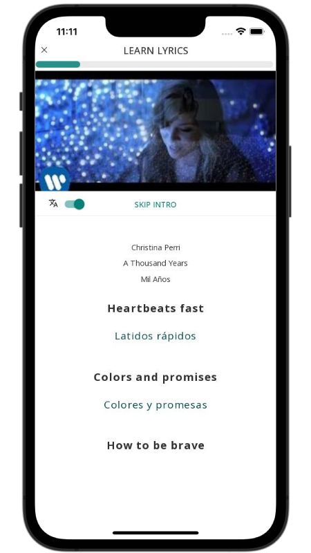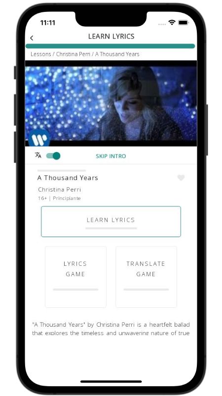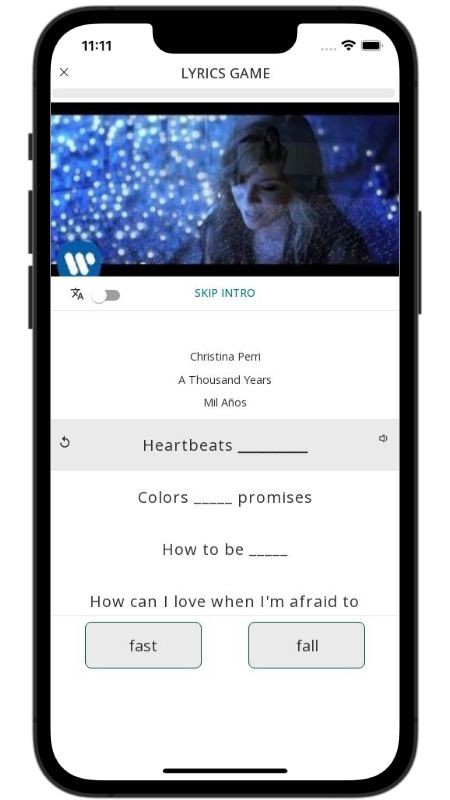 In addition to reading lyric translations, you can now learn English with music and lyrics from your favorite artists.