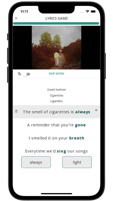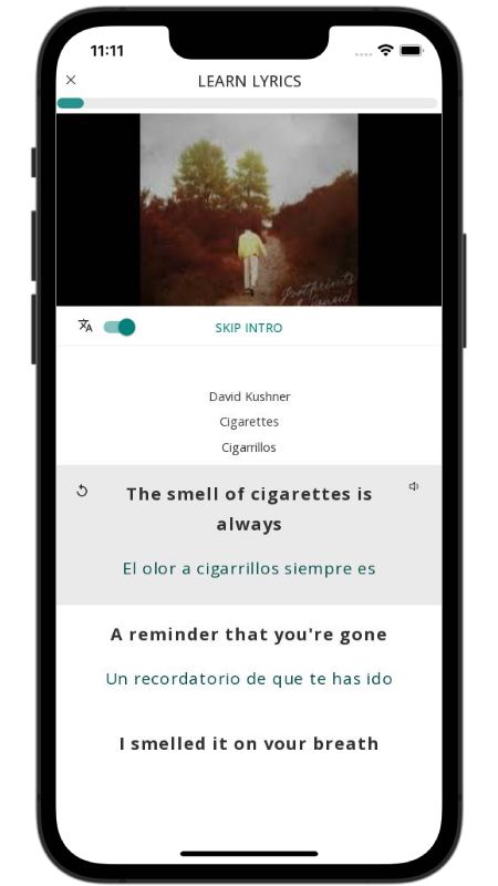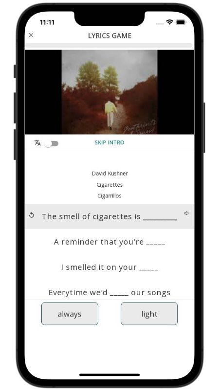 In addition to reading lyric translations, you can now learn English with music and lyrics from your favorite artists.
